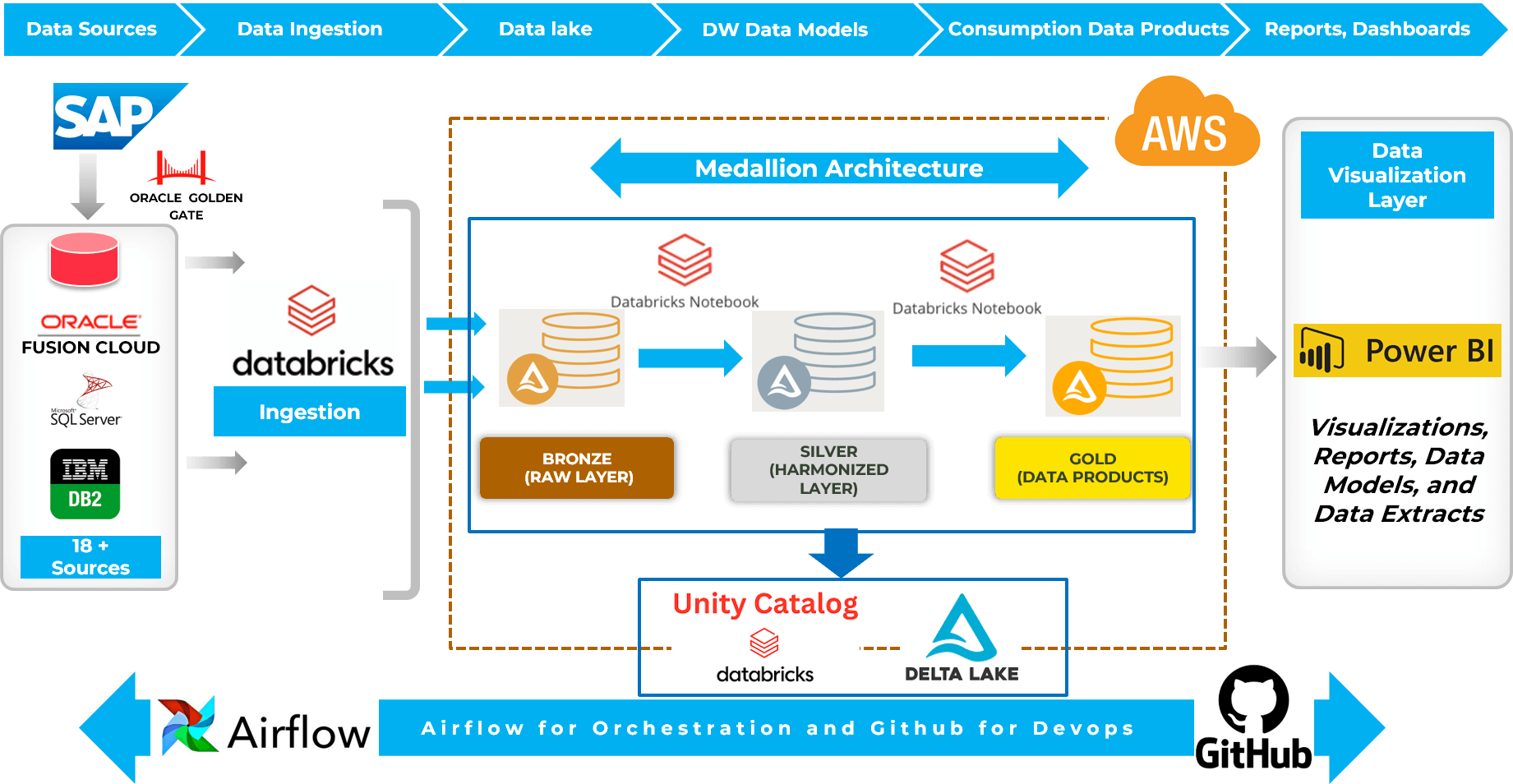 - BUILD DELTA LAKE: We leveraged Databricks Delta Lake for seamless data integration, from 18+ source systems into the cloud and implemented CI/CD pipeline using GitHub Actions for efficient code deployment
